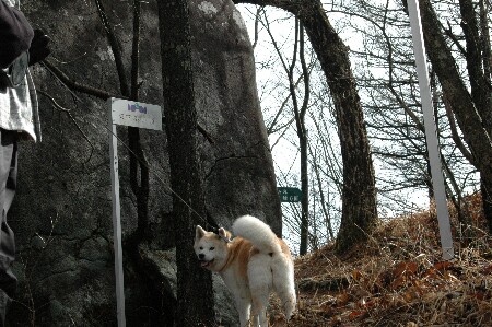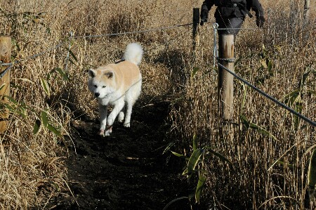 途中、10人くらいのグループの方達が前から来たんで、脇に避けてたら、 「秋田でしょう。」 「記念に一枚。」って、だっちゃんは記念写真を写されたよ。 秋田犬を代表するには年寄りすぎだけどね。 |