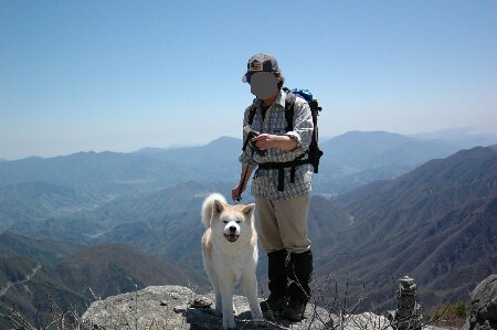 ![]() 8時38分、黒岳。 ここは木に囲まれて展望は無い。 「記念写真写すよ、ほら、ポーズ、しっぽを上げて!」 めんどくさいな、もう。。。 |