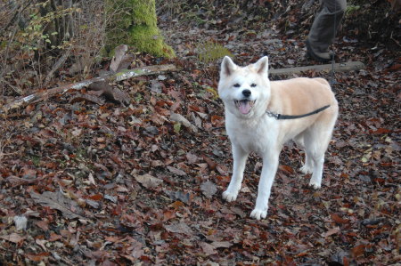だっちゃんはイノシシの臭いにすっごく張り切ったんだけど、子イノシシに追いついて、チラリと見たら、 なんだ、これじゃないわ、この先にもっとデカイのが居るはず、って更に先にダッシュで行こうとした。 だけど、親イノシシは居なくて、ガッカリ。 大洞山と三国山との間ででっかいイノシシを見たもんね。 イノシシの親子連れを見たんだもん。 こんなちっこいのは興味無し。 |