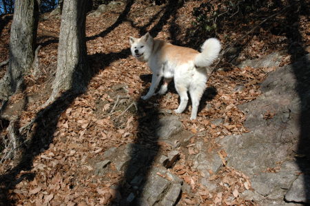 さすがにこの年になると、一月経つと、驚くほど老けている。 一月、一月が大きいな差だね。 途中の日だまりで一休みして、だっちゃんお待ちかねの美味しい物を食べた。 これがなきゃ、ね。 |
