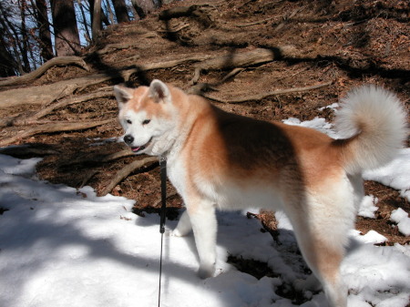 だっちゃんちでは、犬連れで出かける山を選ぶ大事な点は、何がなんでも一番は駐車場だ。 犬は電車やバスに乗せて貰えないから、どこへ行くにも車で行かなきゃいけないものね。 駐車場がある程度の台数分がある事が一番大事だ。 2番目は、トイレがある事。これも大事。人間はトイレが大変だものね。 コンビニとかでもトイレは貸して貰えるけど、でもやっぱり駐車場にトイレがあるのが一番気兼ねないし、出発前にトイレを済ませると安心だって。 3番目は、道標がちゃんとあって、道がわかりやすく、迷いにくい事。 楽しんで歩いているうちに道を見失うとか、間違うと怖いものね。だっちゃんは犬だけどぜんぜんあてにならないし。 どんな所でも山は山だから、街とは全く違う、わかりやすいのが大事だよね。 後は、歩いて楽しい事かな。 色々な変化に富んでいて、その時の状況によってコースを変えられたら一番いいね。 って、事で、また奥多摩に来たんだ。 この前行った御岳山のハイキングコースがとっても気に入ったから、今度は三頭山に登ろうって。 都民の森駐車場は、駐車場代無料、利用可能時間8時〜17時30分、トイレもあるから安心。売店もある。 この辺りは、道標もあちこちにちゃんとあるし、色々なコースがあって状況に応じて楽しめるから気に入ったんだ。 桧原村の都民の森駐車場までは、とても遠かった。 細い曲がりくねった道路の両側に雪があるし、日陰の道路は凍ってるし、ゆっくり慎重に進んだから、思わぬ時間が掛かった。 お天気は良かったけど、風が強くて寒かった。着いた時の気温は日向でもマイナス2度。 予定では、鞘口峠から、三頭山に登って、見晴小屋、三頭山中央峰、西原峠分岐、三頭大滝、駐車場に戻る。と計画したけど。。。 さて、どうなるのかな? 身支度して、さあ出発。 |