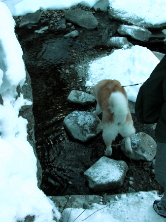 ![]() ここで、お昼を食べた。 だっちゃんもおにぎりを貰った。 いっぱい歩いたからお腹が空いたよ。 お水はいらない。雪を食べちゃう。 ペットボトルのお水より、ずっと美味しいもの。 日当たりはいいけど、風はけっこうあってじっとしてるとすぐ寒くなる。 お昼を食べたらとっとと退散。 また、せっせと歩く。 |