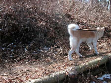![]() 日差しがまぶしいし、暑いし、 ここで、登って来た可愛い柴犬と会った。 お互い、お利口にすれ違ったよ。 |