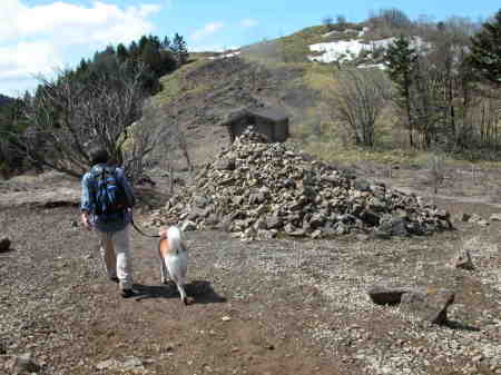![]() 9時55分、賽の河原。 向こうに見えるのはログハウス風の綺麗な避難小屋。 でも、避難小屋だって、だっちゃんが居たら避難出来ないんだろうな。だっちゃん一家は軒先で我慢するしかないから、避難するような状況には絶対になれないね。 |