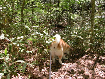 あんまり暑くてまいったので、今日はもう布滝に行くのは止めにした。 また今度来た時に、歩いた道を完成させようね。 それまでお預けだ。 あとは、お城でも見て帰ろう。 |