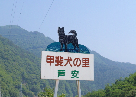 ![]() ここ芦安村は、甲斐犬の故郷なんだって。 でっかい看板があったよ。 この辺の山で獲物を追っていたんだね。 |