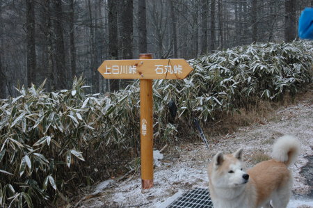 お天気がいまいちだったけど、寒い方がだっちゃんは楽なんで、良かったよ。 色々な所を歩けて、とっても楽しかった!! 人間は、最後の林道から駐車場までの歩きに、気分的にかなりまいってた。 お天気が良ければまた違って、楽しく歩けたんだろうけどね。 今日は寒かったんで、結局一度も座る事が無かった。 休憩も立ったまま、お茶を飲んだりコーヒーを飲んだり、おにぎりを食べたりおやつを食べたり。 暑い時期とは過ごし方も変わってくるね。 だっちゃんはぜんぜん疲れなかったよ。 最後まで楽しく元気に歩いたもの。 この冬も雪の中をいっぱい歩けたらいいな! 頂上を目指すのも楽しいけど、峠から峠へ、って歩くのもとっても楽しいもんだね! 今度は南の方も歩きたいな! 上日川峠(8時35分) ー> (8時57分)福ちゃん荘 ー> (9時58分)雷岩 ー> (10時55分)大菩薩峠 ー> (11時35分)石丸峠 ー> (12時37分)林道 ー> (13時25分)上日川峠駐車場 所要時間、5時間50分。 |