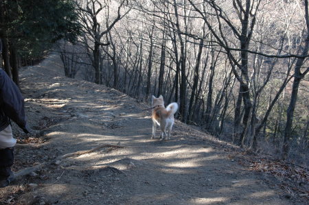 | 年末年始に山へ行こう、って言ってたのに、なかなか行けなかった。 そろそろ山に連れて行ってくれないと、だっちゃんの元気は爆発してしまう。 爆発すると人間は疲弊するんで、そうなる前に急いで山に行こう、って事になった。 だけど、どこに行ったらいいものか、迷いに迷ったんだけど。 雪があると楽しいけど、中途半端に雪があると凍ってたりしてなかなか大変。 固く凍った雪は、だっちゃんの足にも辛いだろう。 だったら、最初っから、雪の無い山の方がいいだろうか。とうちの人間は悩んだんだけど。 奥多摩には雪はぜんぜん無いみたいなんで、奥多摩に行ってみる事になった。 ビジターセンターに聞いてみたら、日影は凍った所もあるんで、念のためにアイゼンを用意して下さい、との事。 買ってから、一度も使った事の無い軽アイゼン、いよいよ今日は使えるだろうか? 奥多摩周遊道路は、夜間閉鎖される。 道路が空いてて思ったより早くついたんで、9時までちょっと待って、月夜見第二駐車場へ行った。 |