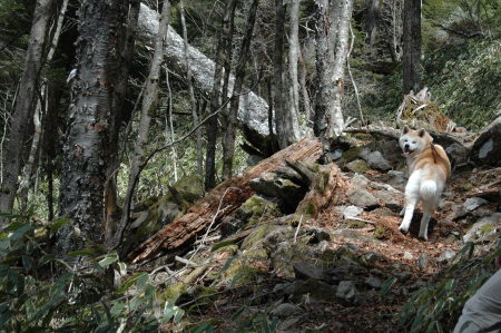 ![]() ここは気持ちいいとこだね。 鹿の糞があるから気を付けないといけないけど。 将監小屋にさしかかったら、管理人さん(オーナーさん?)と会った。 「いい犬だね。」って、だっちゃんを褒めてくれたよ。 |
