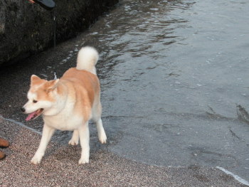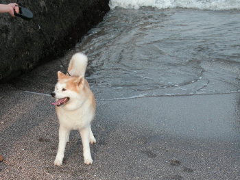 ← あまりに暑くて、日陰で一休み。 お水を買って貰った。 ↓ いつも遊びに行く公園 だっちゃんは波が嫌いだ。 |