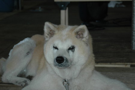 | まだまだ元気 だっちゃんが若い頃は、出先で秋田犬に会う事なんて、めーったに無かった。 めーったに、どころか、めーったにめーったにめーったに無かった。 でも、最近はけっこうあちこちで会うようになった。 秋田犬が増えてるわけじゃないだろうから、 単純に犬を連れて出かける人が増えたって事なんだろうけど。 ちょっと前、帰り道の谷川岳PAで休憩して、 あたりをほっつき歩いてたら、 んんっ?! 暗がりにぼんやり浮かぶあのシルエット、あの大きさ!! 秋田犬だ!! 5ヶ月の白秋田犬のメス。 元気で遊びたい盛りで、じゃれかかって来る。 親分はすっかり喜んでなでなで。 飼い主のおじさんも、 「おてんばでおてんばで、」と言いながら、可愛くてしかたない様子。 可愛がられている秋田犬に会うと嬉しいね! んで、だっちゃんはというと、 若いもんには、まだまだ負けないぞ、ってんで、ガウガウ言ってやったよ。 最近では鷹揚になって、ほとんどの犬にガウガウ言わなくなってただっちゃんだけど、 相手が秋田犬なら話は別だ。 しかも、若い秋田犬なら特にね。 しっかりしめとかなきゃ。 んでも、相手にはあんまり通じてなかったみたいで、 懲りずに喜んで親分に飛びついてるんだ。 これだから、お子様はやだね。 |