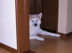 | ここは、3カ所が囲まれてるから 居心地がいいんだ。 トイレの番犬だって言われるけど。 |