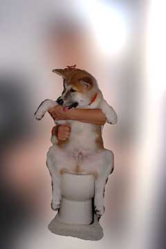 ブハハハハー(爆!)これどうやったの??これでおトイレ覚えたらテレビに出られるよ。お鼻がまだ黒いから小さい頃の写真?